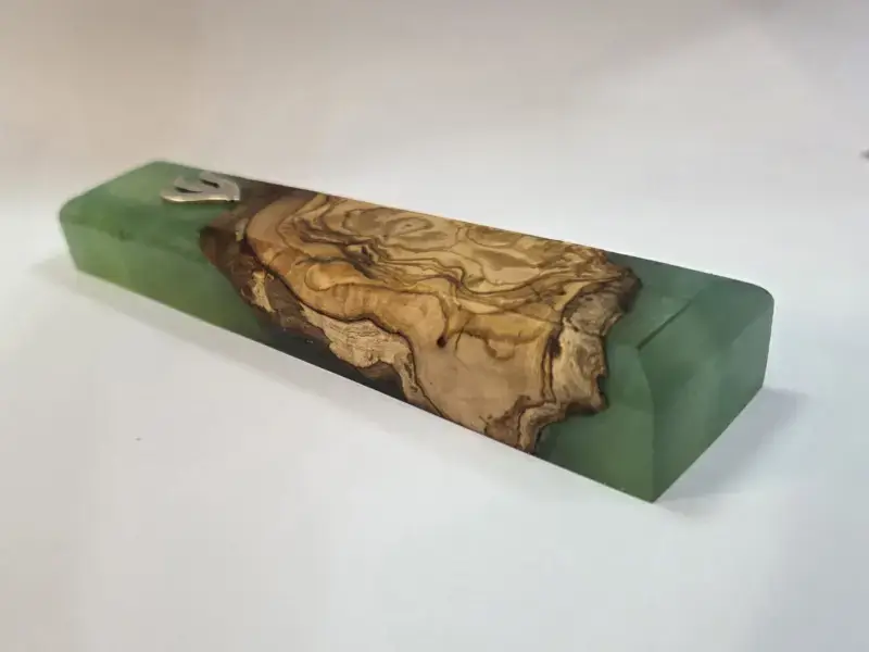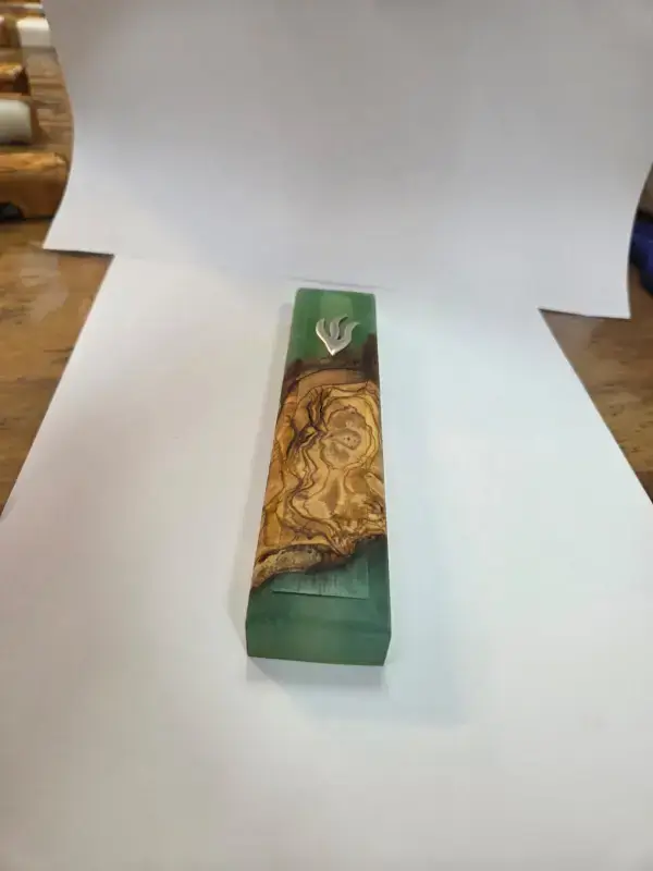 בית מזוזה בעבודת יד, שילוב עץ טבעי ואפוקסי יוקרתי