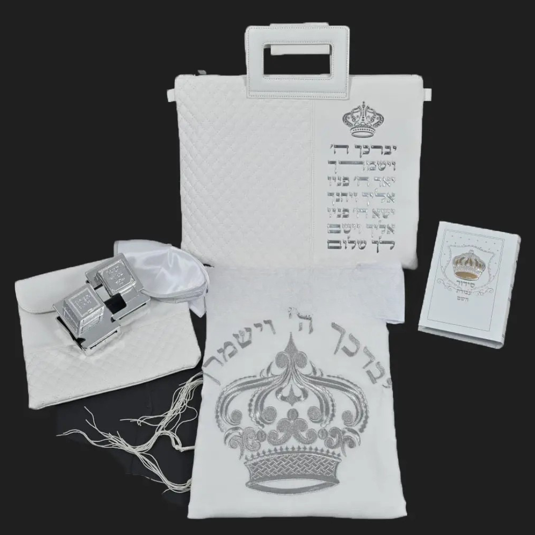 כולל נרתיקים דמוי עור מפוארים. כולל טלית צמר לא מחליקה, 100% רחלים,